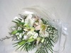洋花で清楚に白を基調にした花束です。…